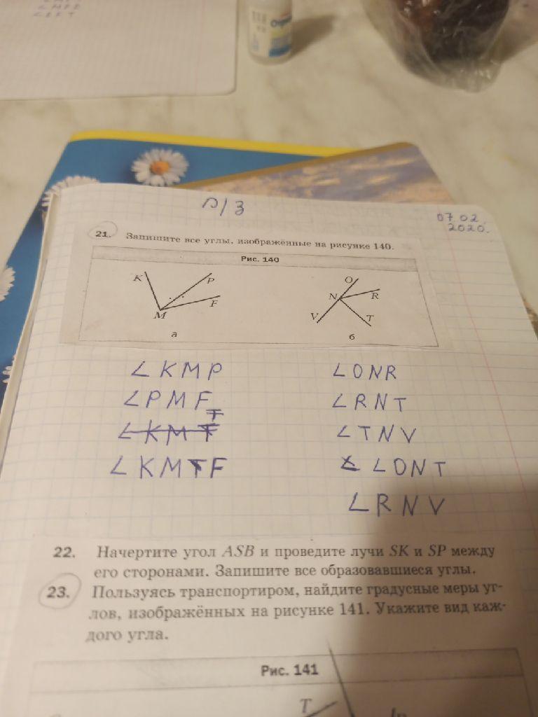 Помогите решить 21 номер. Выпишете все углы под буквой а и все углы под буквой b .. Я вроде выписала но не уверена что все. Буду вам благодарна очень
