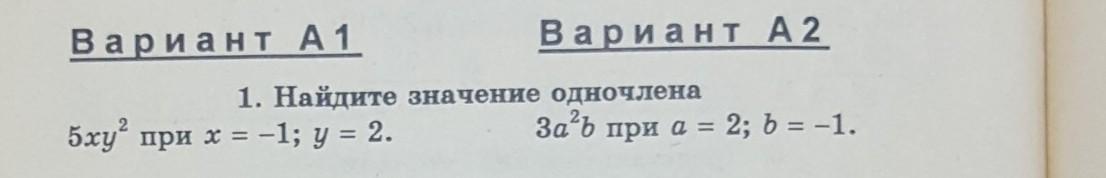 5ху2 = 5*(-1)*2(в квадрате)= -5*4= -20