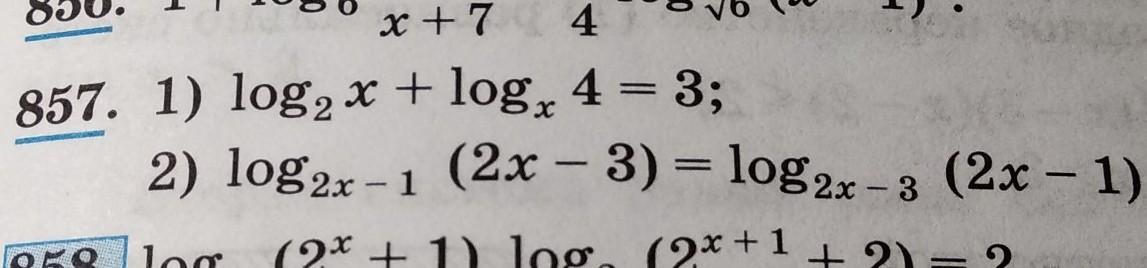 Логарифм равен 1 если аргумент равен основанию. Значит 2х-3=2х-1, что невозможно. Логарифм равен -1 , если аргумент и основание взаимно обратны