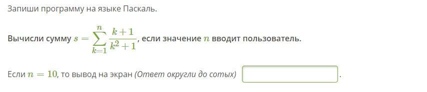 Вычисли сумму s=∑k=1nk+1k2+1, если значение n вводит пользователь.