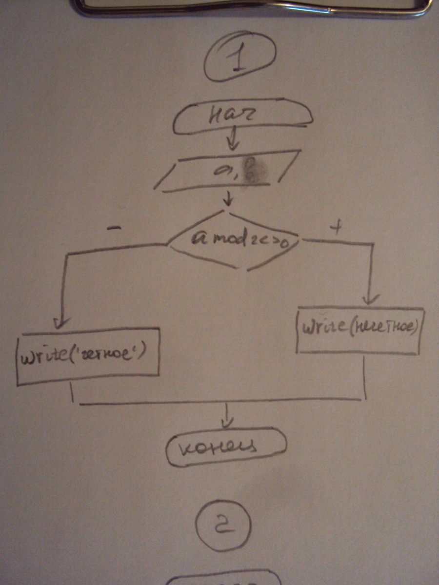 Задание № 1) Разработать блок схему алгоритма, который проверяет, является ли четным введенное с клавиатуры число