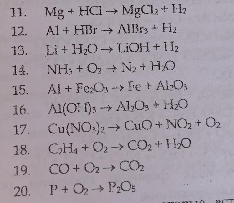 12) 2Al + 6HBr = 2AlBr3 + 3H2