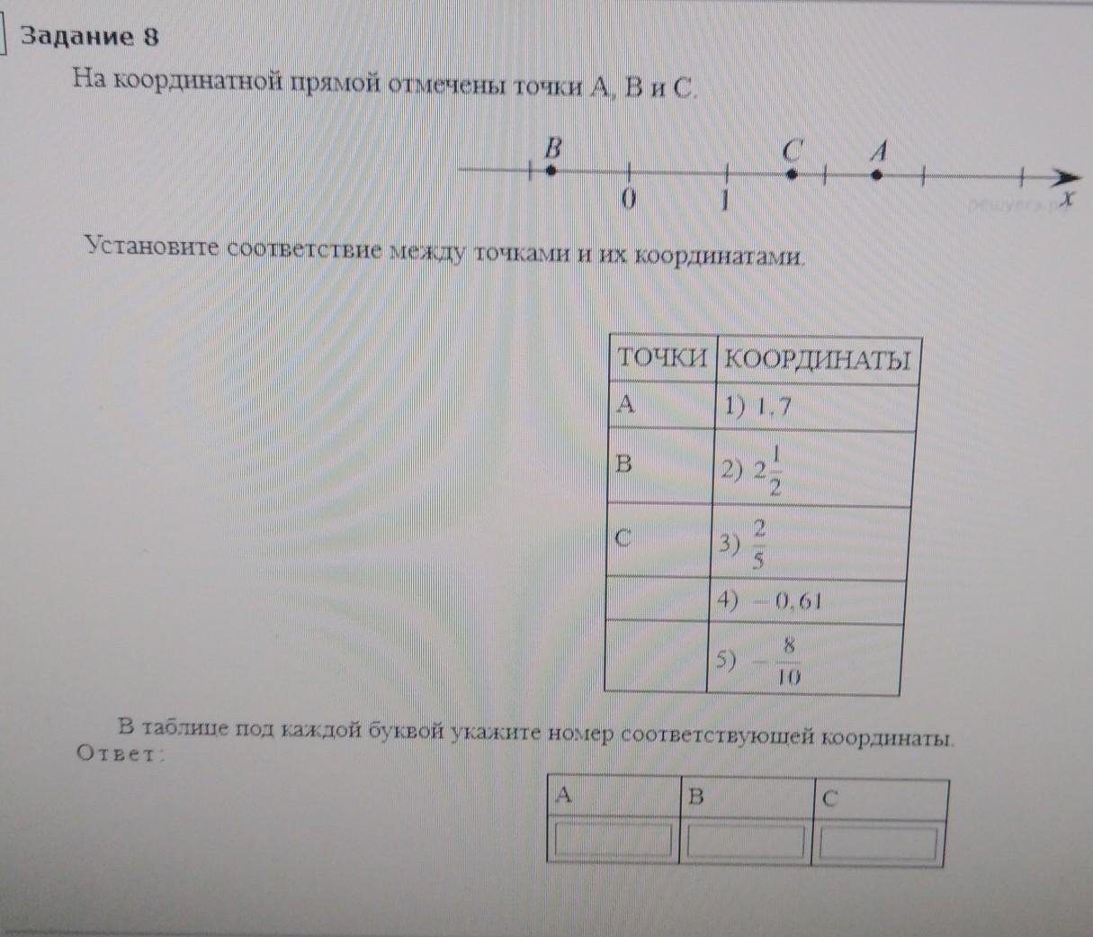 В таблице под каждой буквой укажите номер соответствущей координаты.