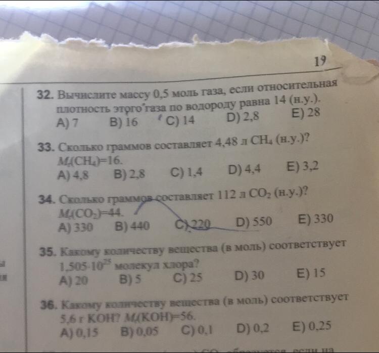 32) Относительная плотность - отношение молярных масс двух газов (в данном случае отношение молярной массы неизвестного газа к молярной массе водорода). Имеем D = M(Неизвестный газ)/M(Водород)
