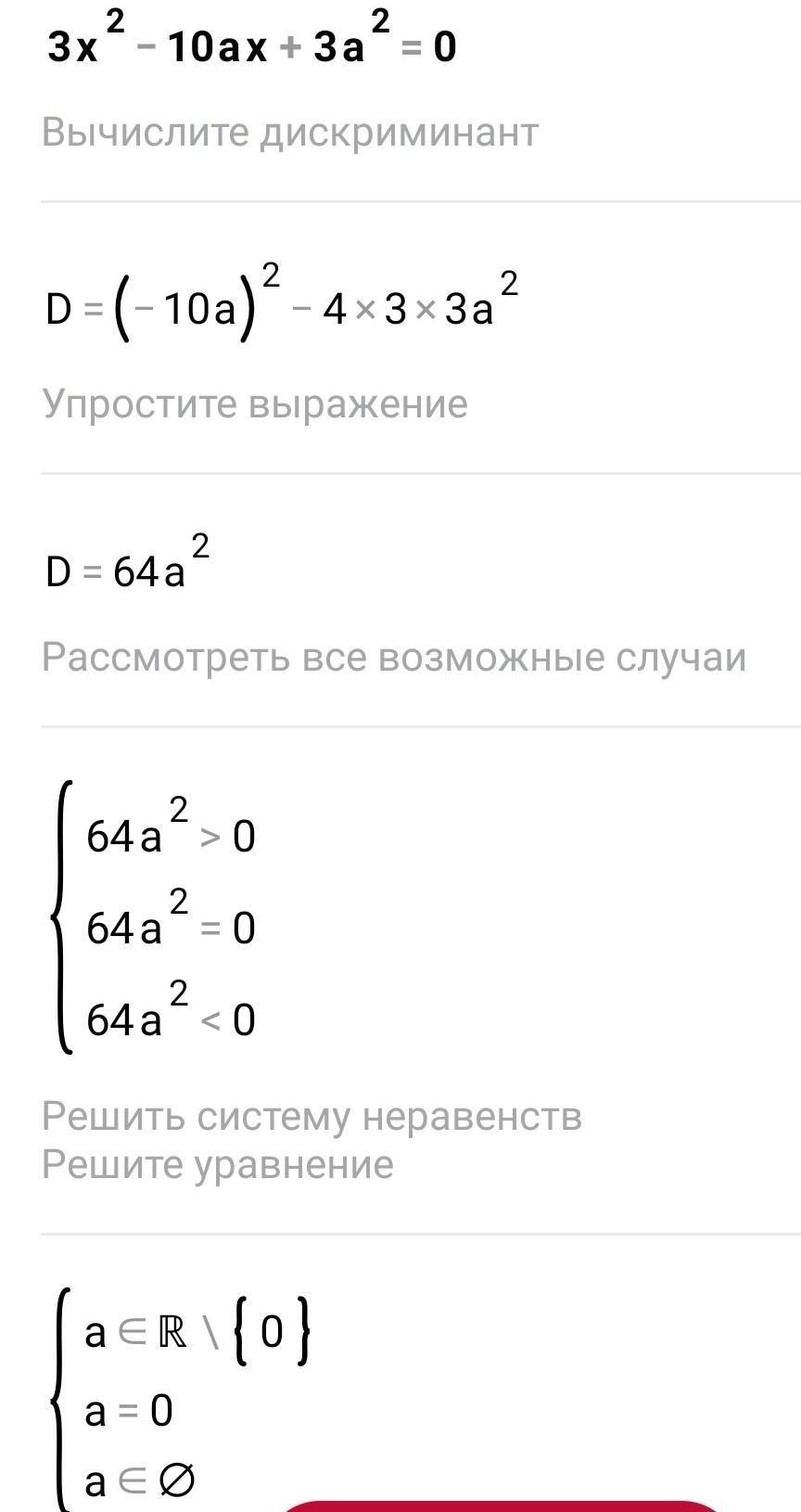 При а = 0 оба корня совпадают и х = 0. При а ≠ 0 корни - числа 3a и 1/3a.