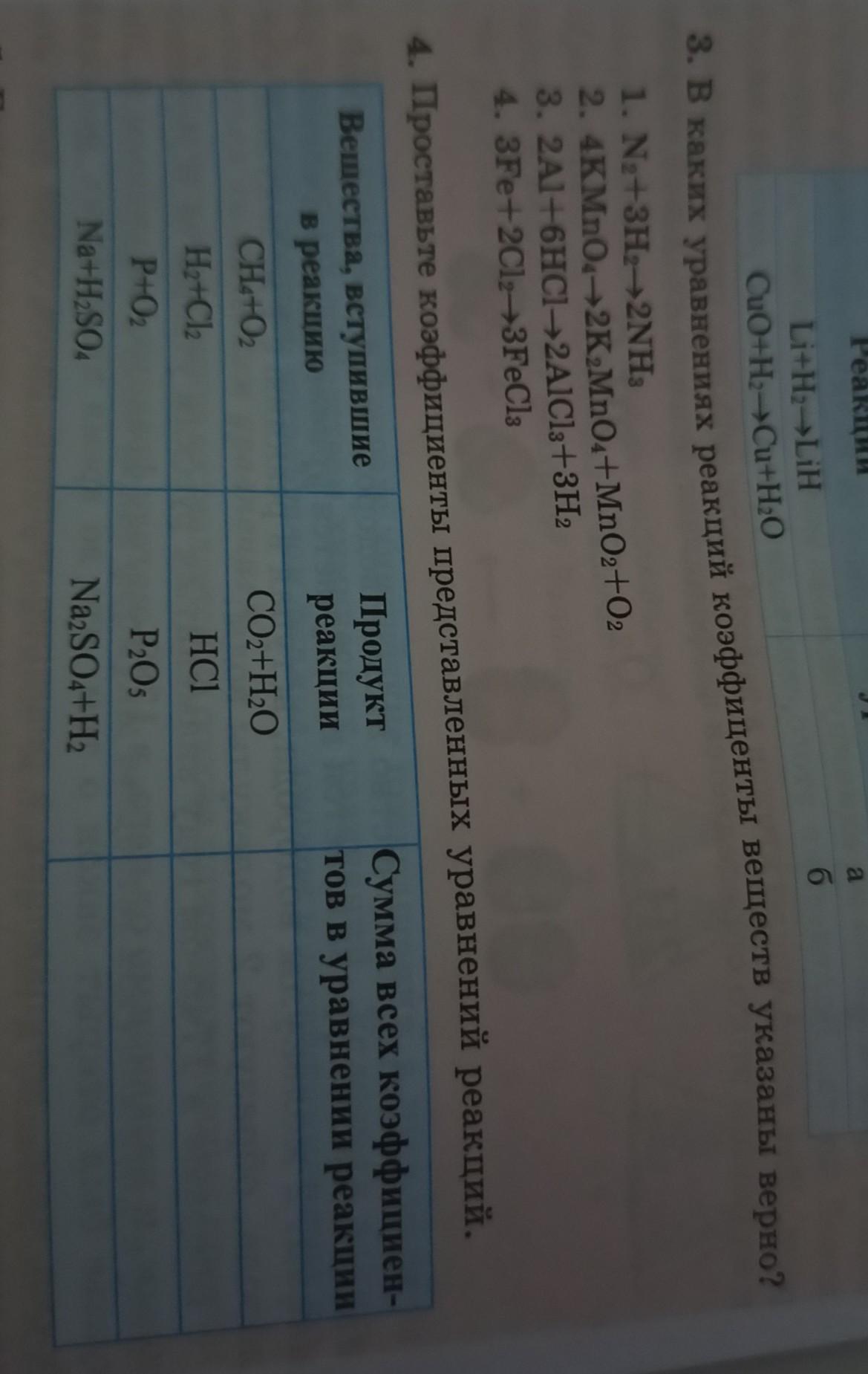 б) в правой части кислорода 10 атомов(2х5), значит и в левой части его должно быть 10, ставим в левой части перед кислородом коэффициент 5. 4P+5O₂→2P₂O₅. Теперь в левой части 4атома фосфора и в правой 4атома фосфора, кислорода в левой части 10атомов и в правой части 10 атомов. Теперь у нас равенство и мы ставим знак= 4P+5O₂=2P₂O₅.