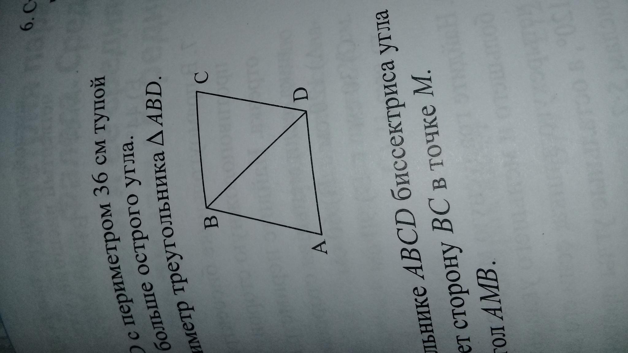 В ромбе ABCD с периметром 36 см тупой угол в 2 раза больше острого угла. Найдите периметр треугольника ABD