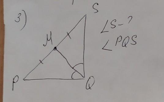 1)Угол P=углу S тк QM делет сторону поровну, значит треугольник рб следовательно угол S =45