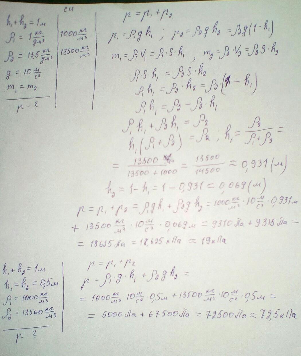 В вертикальную трубку постоянного сечения налиты ртуть и вода.