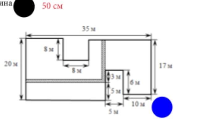 (35-5-10)+(20-5)-0,5=34,5 м длина дорожки