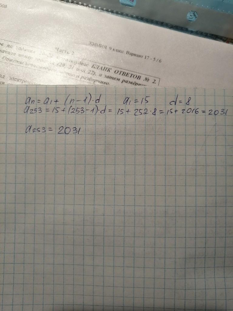 При делении 222 на 8 не получается целое число. Значит, число 253 не является членом арифметической прогрессии.