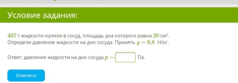 р= F/S= mg/S= 487×9,8: 20=238,63