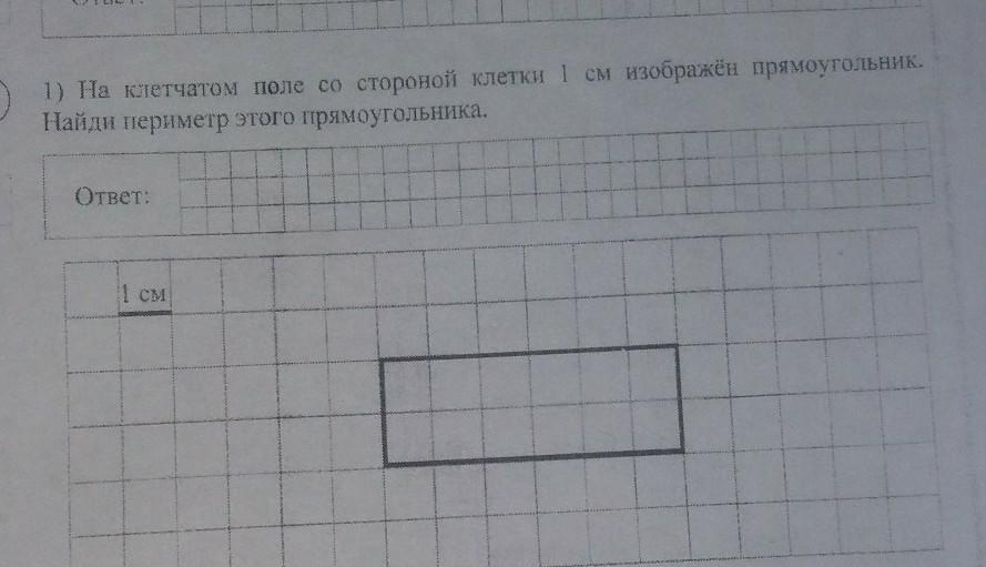 на клеточном поле со стороной клетки 1 см изображён прямоугольник Найди периметр этого прямоугольника