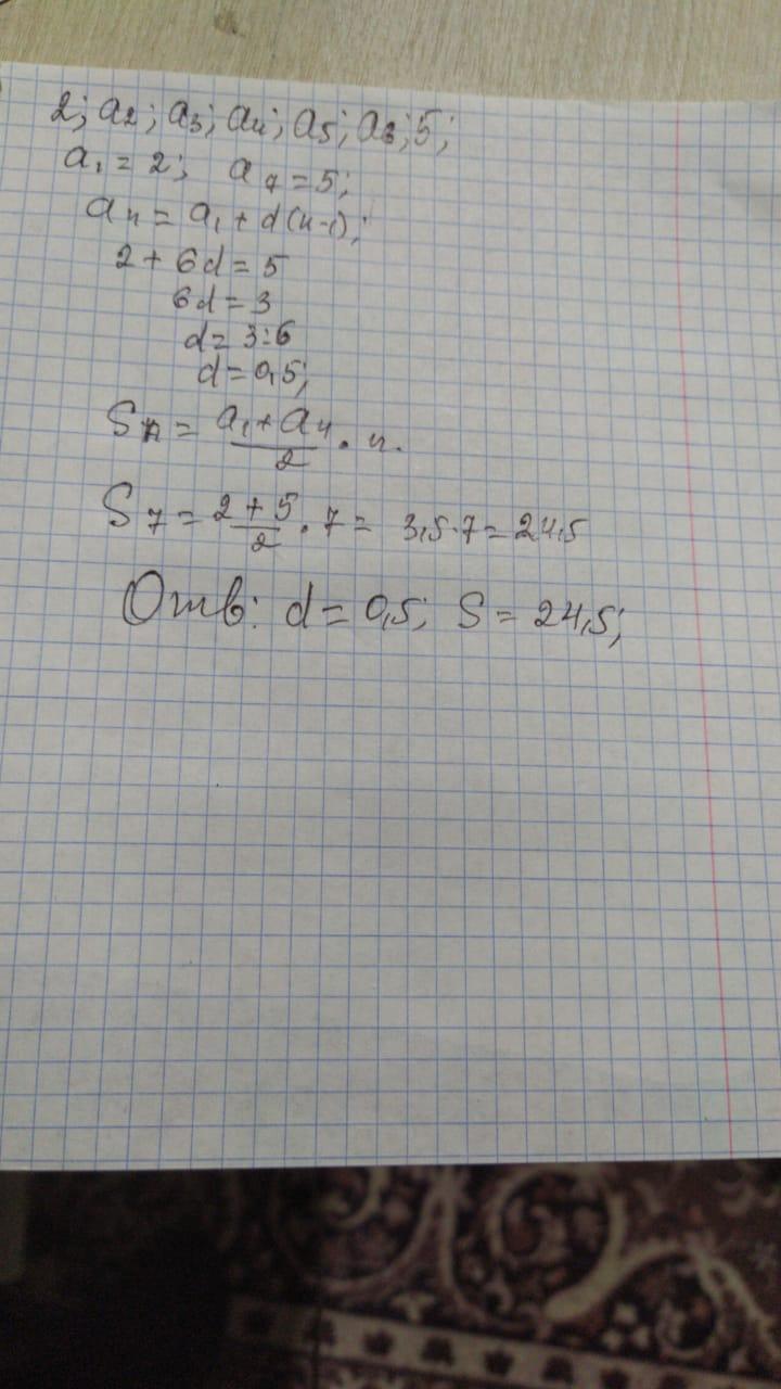 d=(a7-a1)÷6=(5-2)÷6=3÷6=0,5