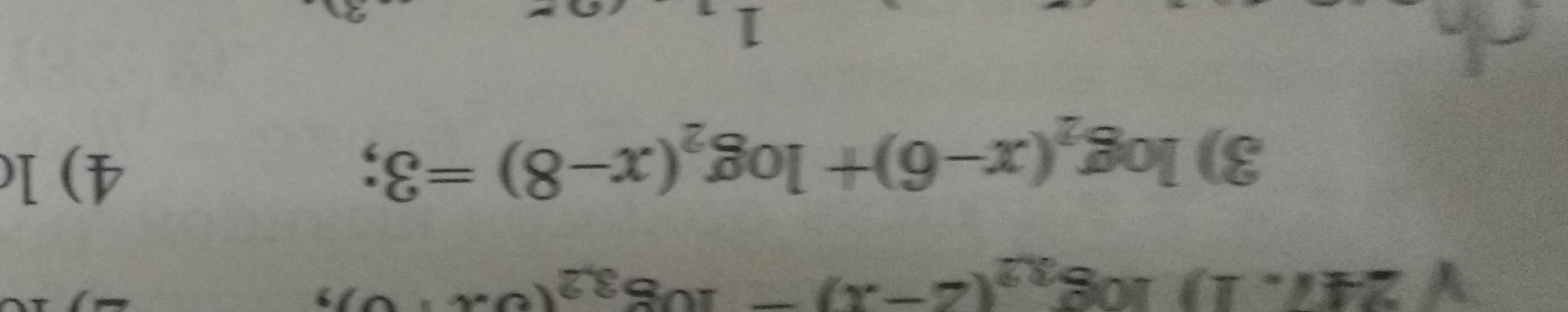log_2(x-6)+log_2(x-8)=3; ; ,; ; ; ODZ:; left { {{x>6} atop {x>8}} right.; ; ; to ; ; underline {x>8}\\log_2(x-6)(x-8)=log_22^3\\x^2-14x+48=8\\x^2-14x+40=0\\D/4=7^2-40=9; ,; ; ; x_1=7-3=4; ,; ; ; x_2=7+3=10\\x_1=4notin ODZ\\Otvet:; ; x=10; .