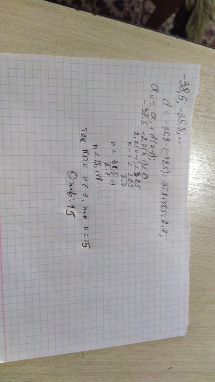 а₁+d*(n-1) <0, подставим сюда данные. Получим -38.5 +2.7*(n-1) <0