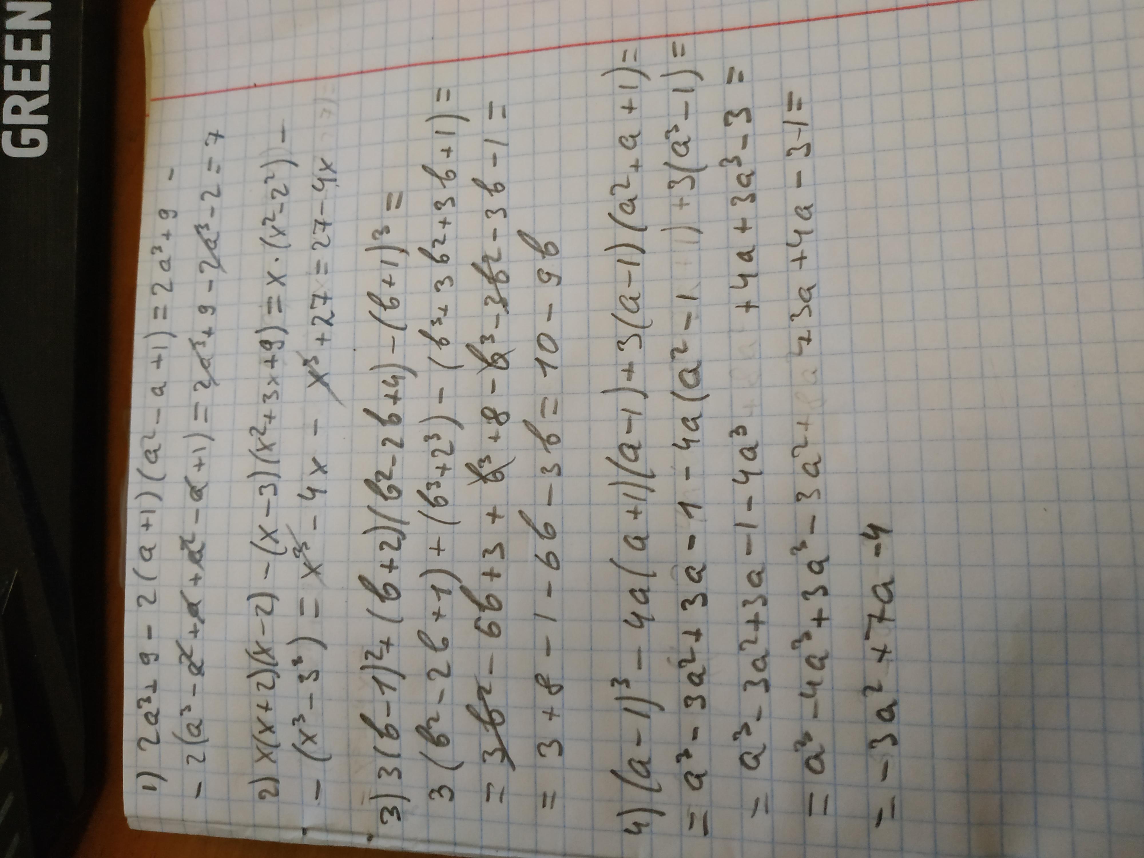1) 2а^3+9-2(a+1)(a^2-a+1)=2a^3+9-2(a^3+1)=2a^3+9-2a^3-2=7