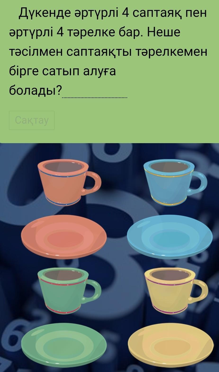 Дүкенде әртүрлі 4 саптаяқ пен әртүрлі 4 тәрелке бар. Неше тәсілмен саптаяқты тәрелкемен бірге сатып алуға болады?