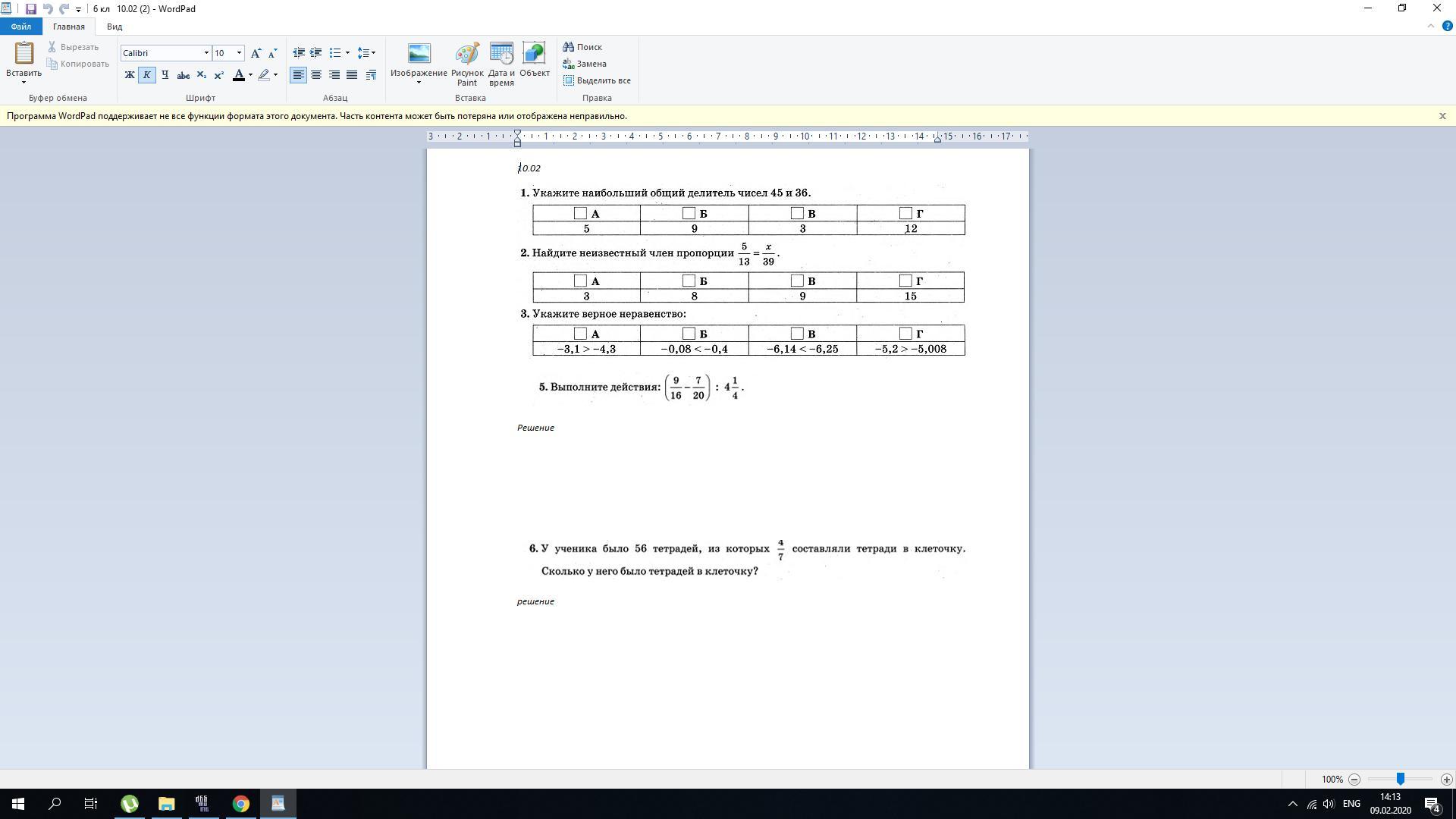 56 : 7 * 4 = 32 (т.)- в клеточку