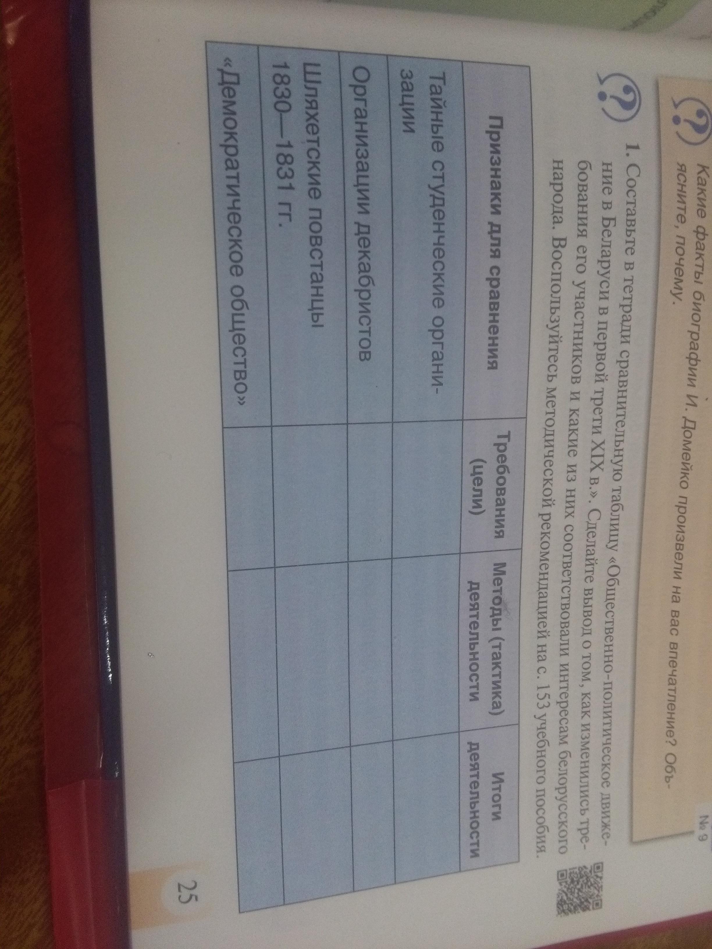 Составьте в тетради сравнительную таблицу общественно политическое движение в Беларуси в первой трети XIX века