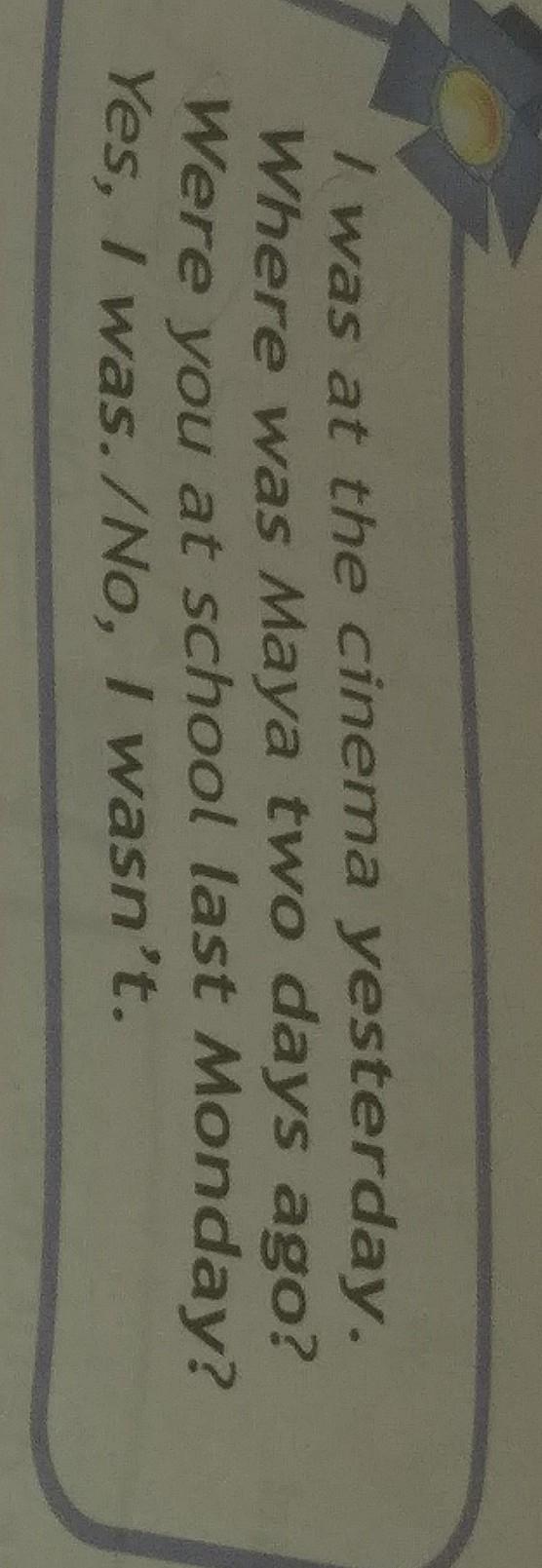 Ответ: Я был вчера в кино. Где была Майя два дня назад? Вы были в школе в прошлый понедельник? Да, я был. / Нет, я не был.