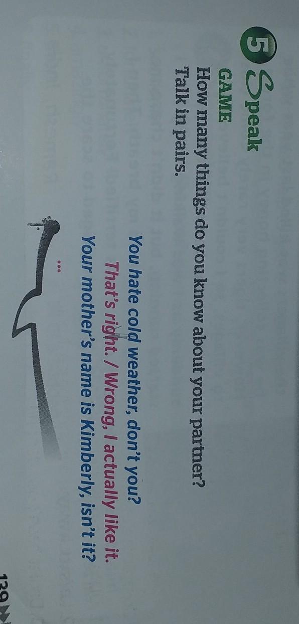 Ответ: Ты ненавидишь холодную погоду, не так ли? Это верно. / Неправильно, мне на самом деле это нравится. Твою мать зовут Кимберли, не так ли?