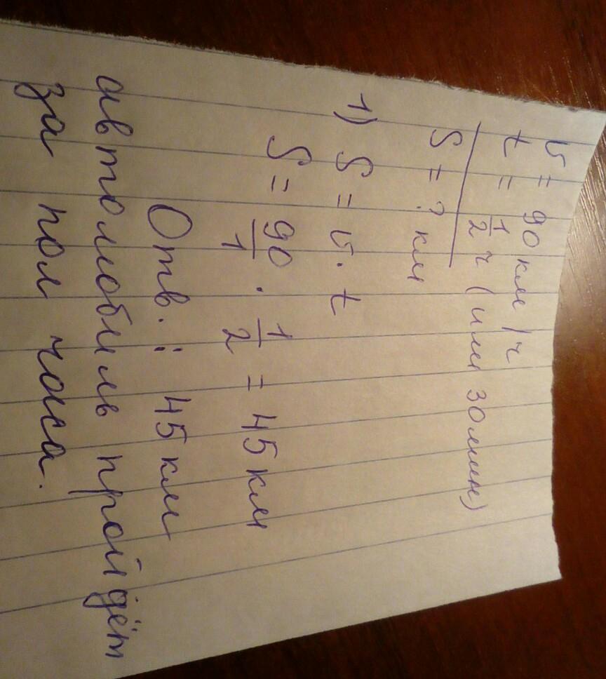 скорость легкового автомобиля по трассе составляет 90 км ч какое расстояние пройдет автомобиль за полчаса Запиши решение ответ