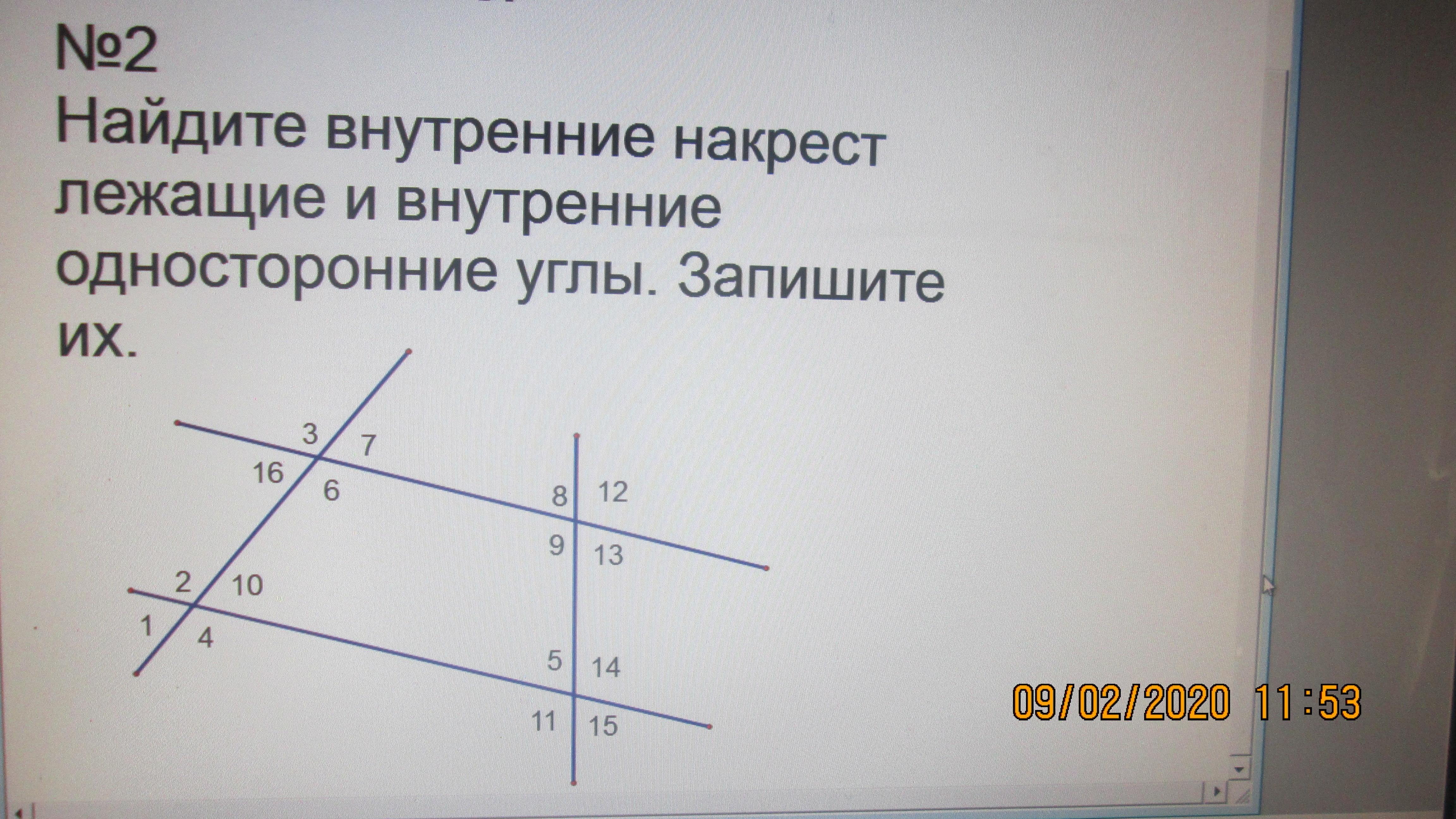 Односторонние углы 2 и 16; 10 и 6 ; 5и 9 ; 13 и 14.