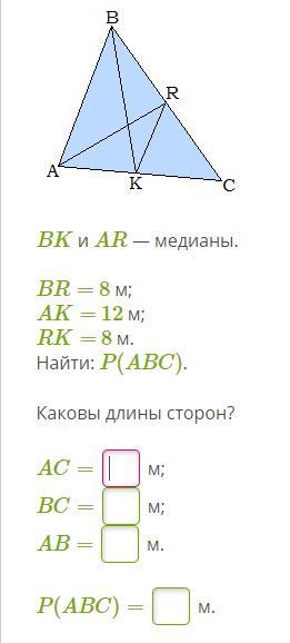 Так как ВК и AR медианы, значит делят стороны пополам.