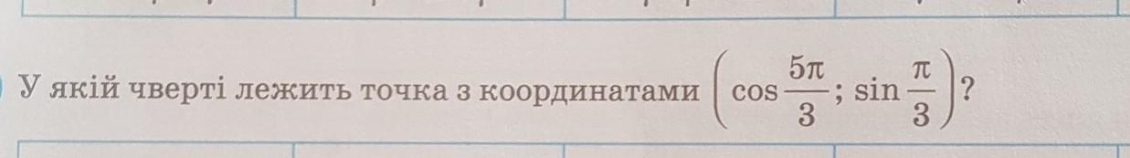 Оба координаты положительны, значит, угол (cos(5π/3);sin(π/3)) в первоой четверти