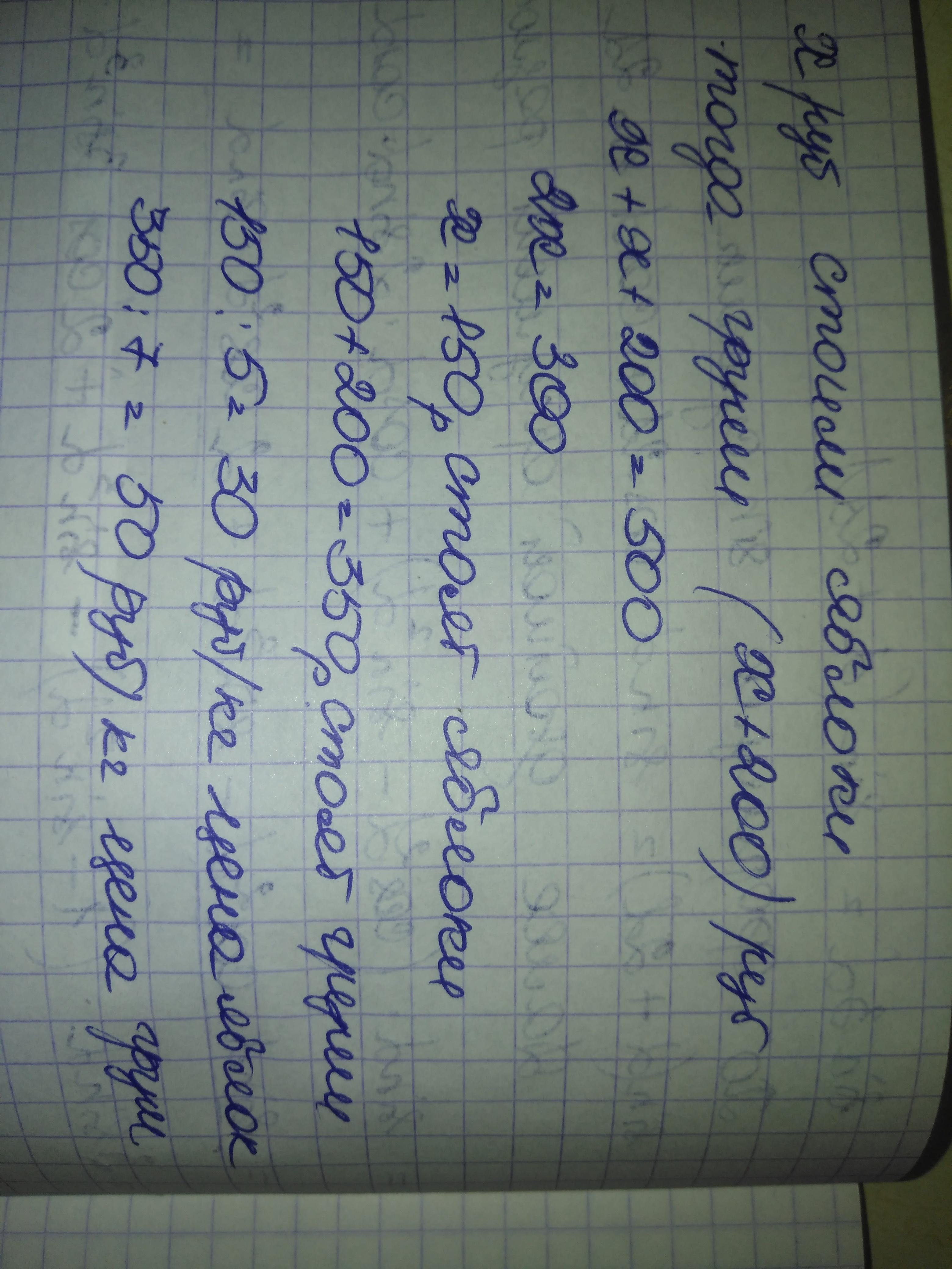 Купили 5 кг яблок и 7 кг груш. За всё заплатили 500 рублей. За все груши заплатили на 200 рублей больше, чем за все яблоки. Сколько стоит 1 кг яблок и 1 кг груш?