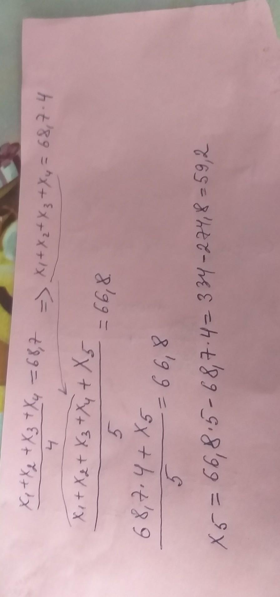 В группе 4 спортсмена. Средняя масса спортсменов равен 68,7 кг. В группу пришёл ещё один спортсмен, и средняя масса стала 66,8 кг. Найдите массу последнего спортсмена