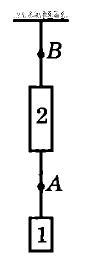На лёгких тросах подвешены два груза (см. рисунок). Масса первого груза 10 кг, масса второго 20 кг. Какова сила натяжения троса в точке А?