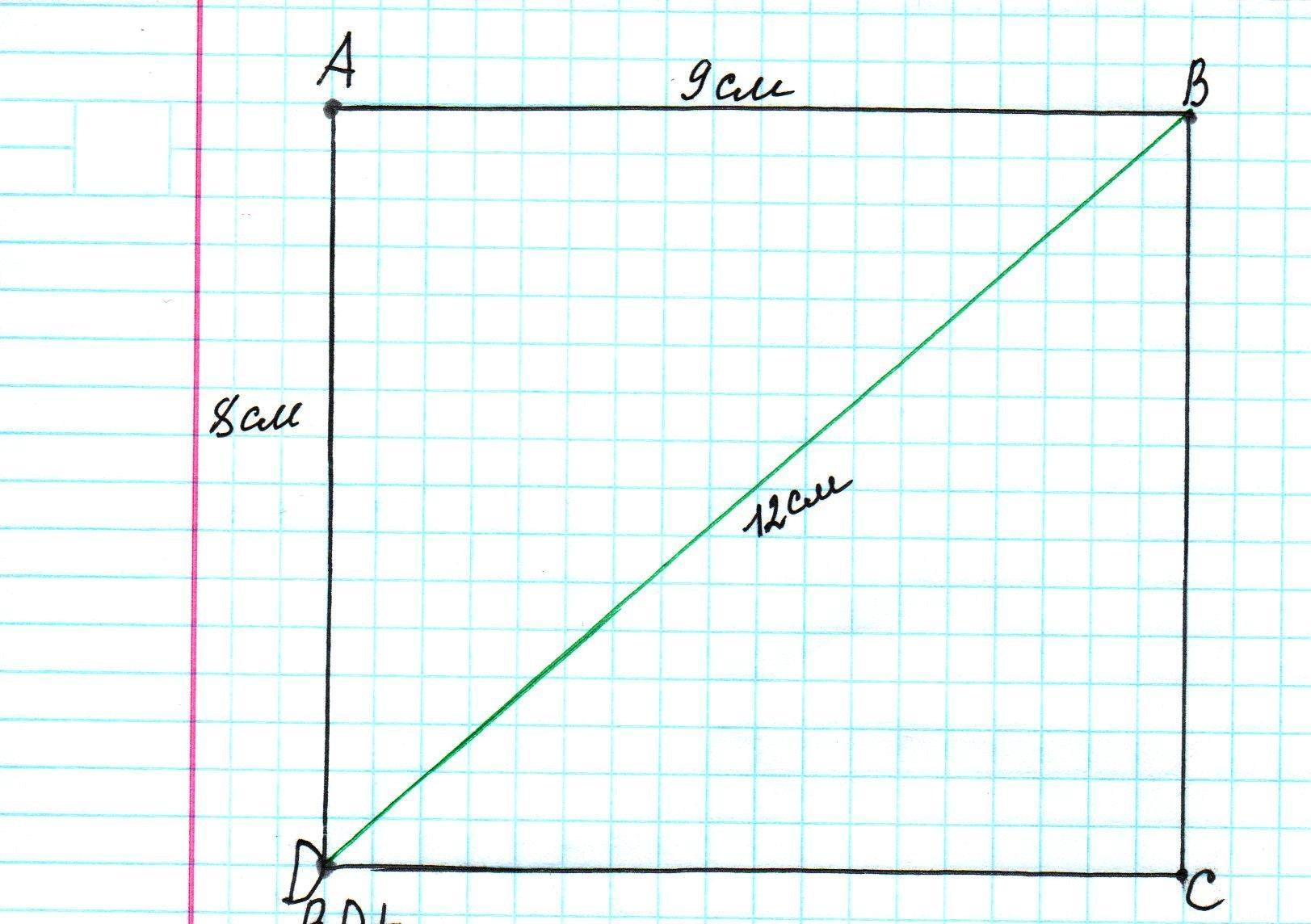 Начертите прямоугольник ABCD, у которого сторона AB равна 9 см, а сторона AD равна 8 см. Начертите отрезок BD и измерьте его длину.