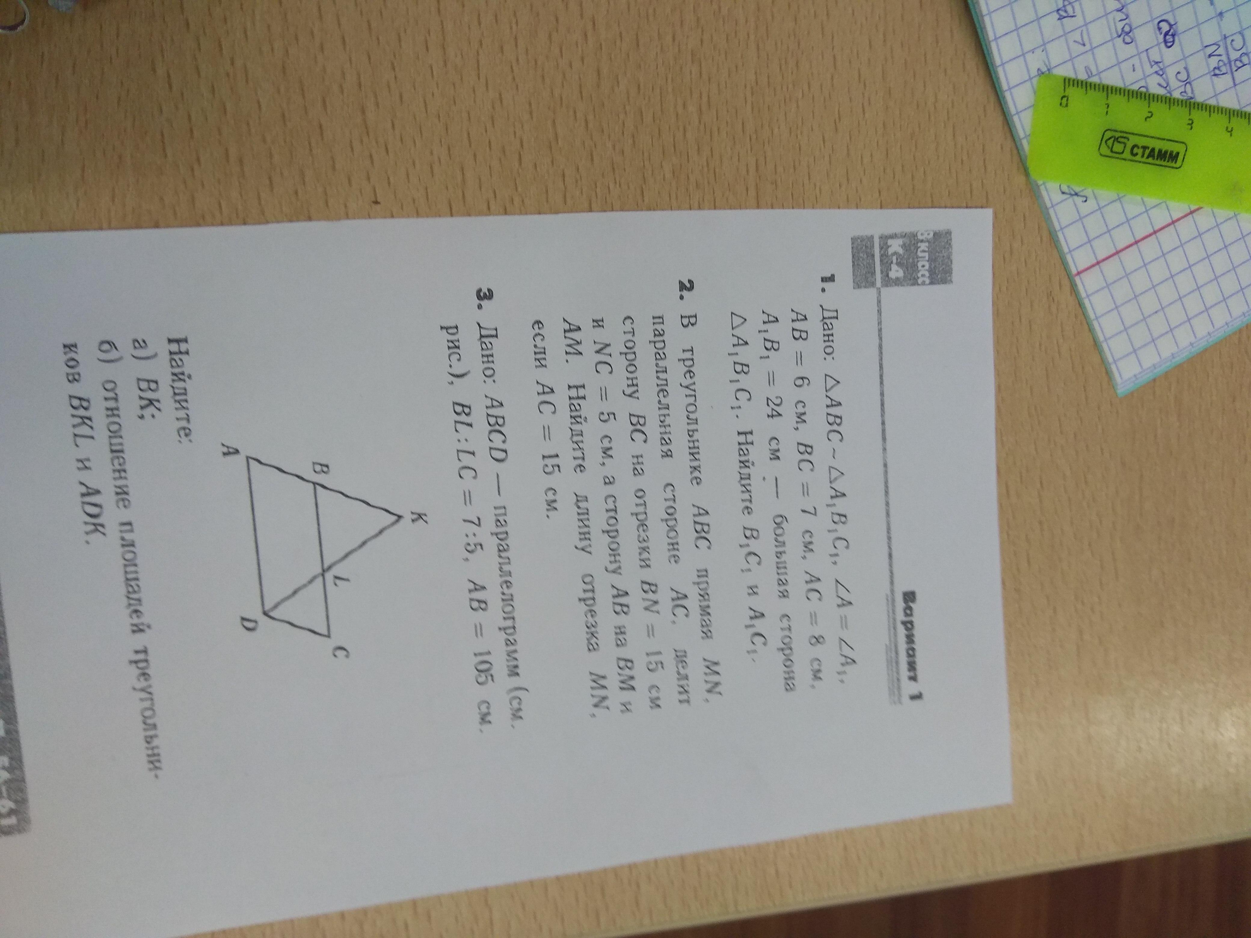 1) Так как треугольники подобны, то A1B1/AB=B1C/BC=A1C1/AC, A1B1/AB=4