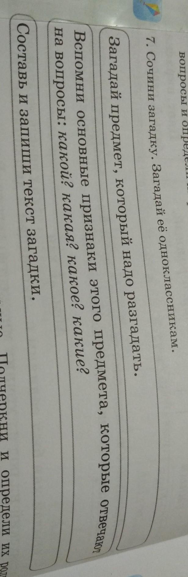 Помогите пожалуйста;) сочини загадку. загадай её одноклассникам. загадай предмет который надо разгадавать. вспомни основные признаки этого предмета, которые отвечают на вопросы какой? какая? какое? какие? составь и запиши текст загадки.