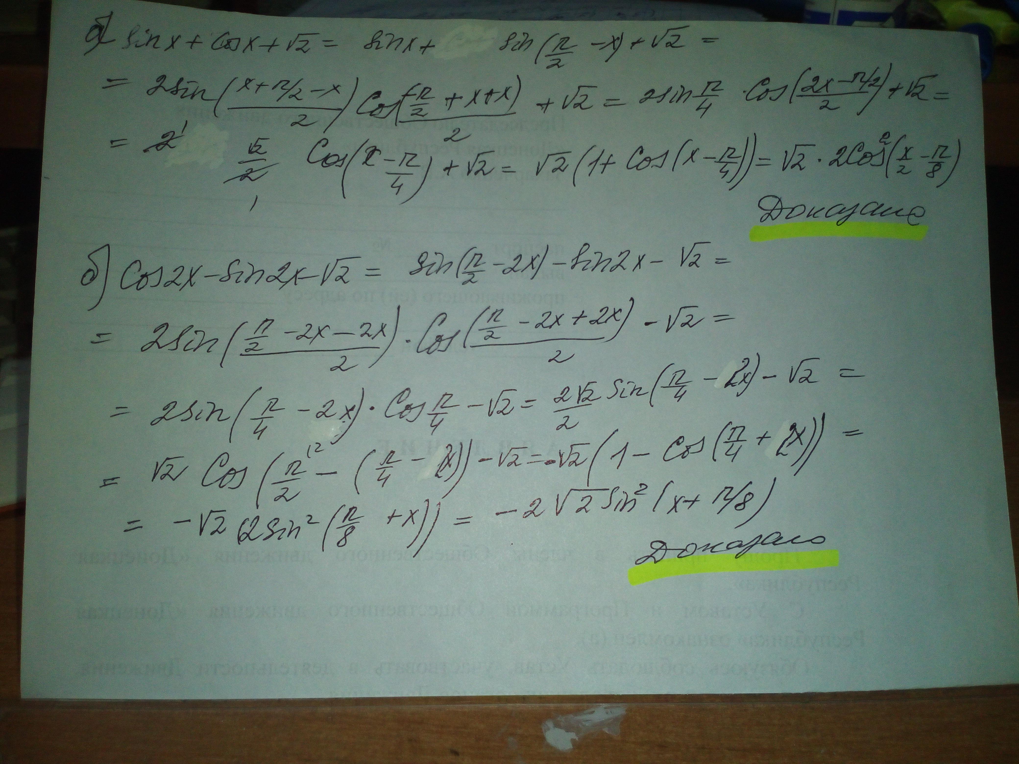 a) sin х + cos х + корень2 = 2корень2 cos2 (x/2 - пи/8);