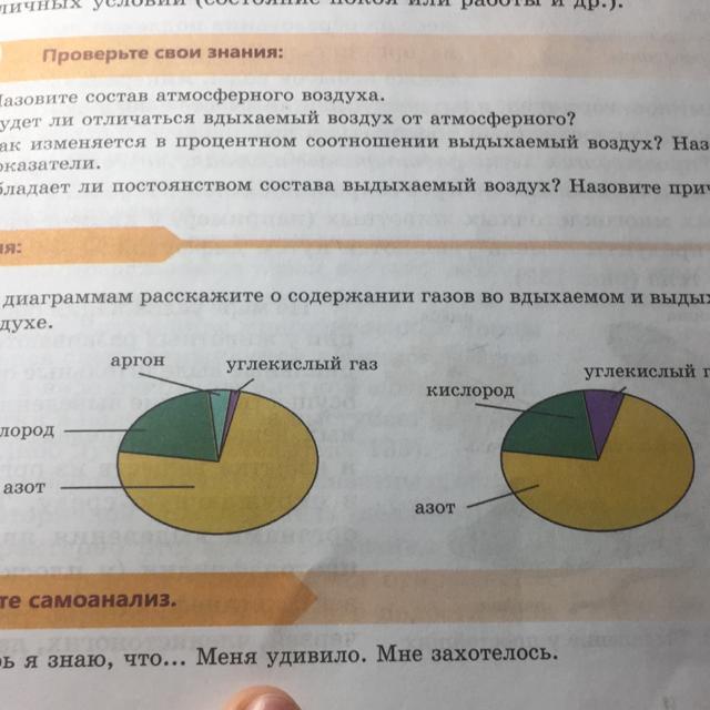 Во вдвхаемом воздухе есть азот примерно 70%, есть кислород примерно 20% и углекислый газ 10%