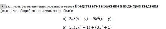 7. (записать все вычисления поэтапно и ответ) Представьте выражение в виде произведения (вынести общий множитель за скобки):