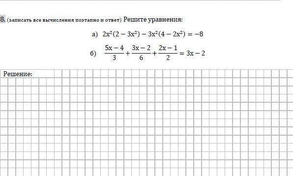 8. (записать все вычисления поэтапно и ответ) Решите уравнения: