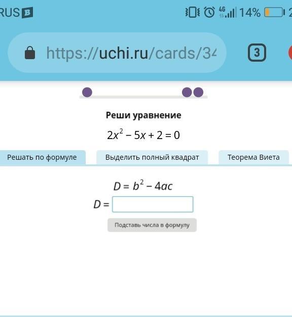 D = 25 - 4*2*2 = 25 - 16 = 9