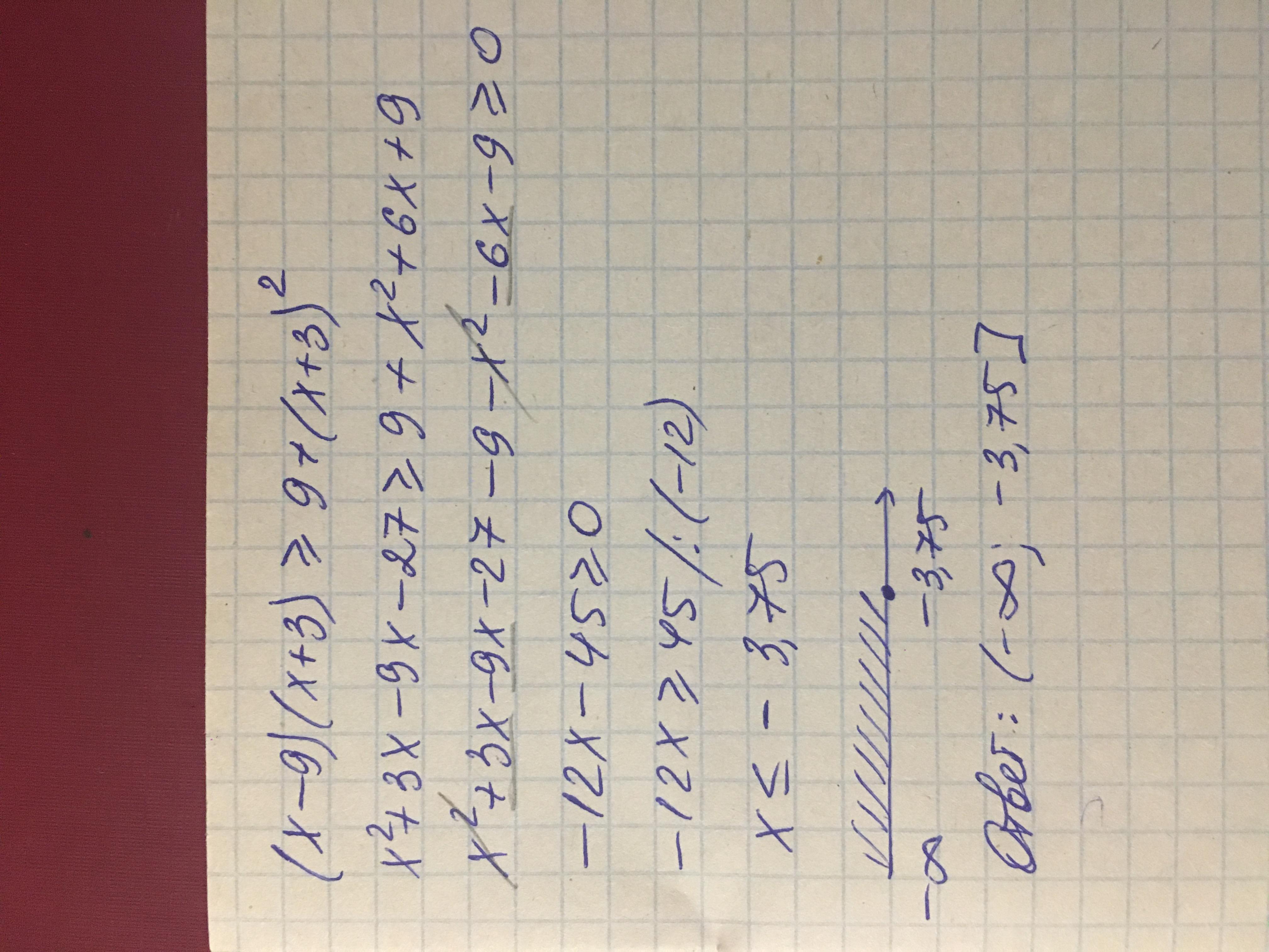 (x-9)(x+3)больше или равно 9+(x+3)(во второй степени)