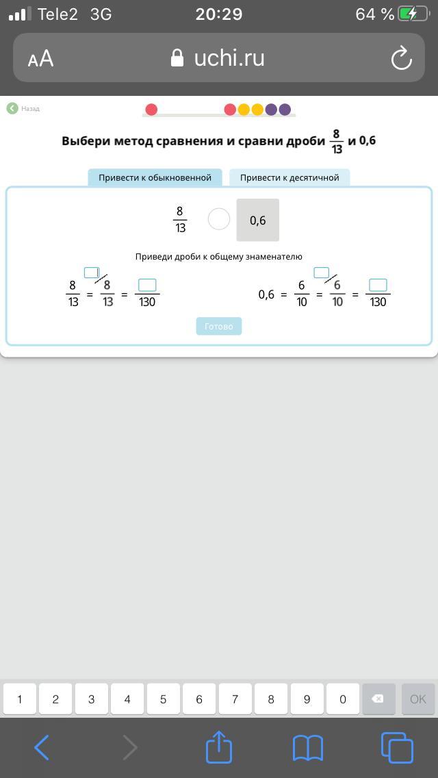 справа 6/10 умножаем на 13, значит, в нижний ряд второй справа квадрат ставим 13. получается 78/130, значит, внизу в крайний справа нижний квадрат пишем 78.