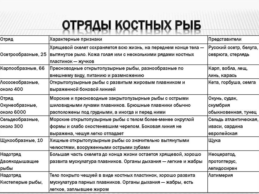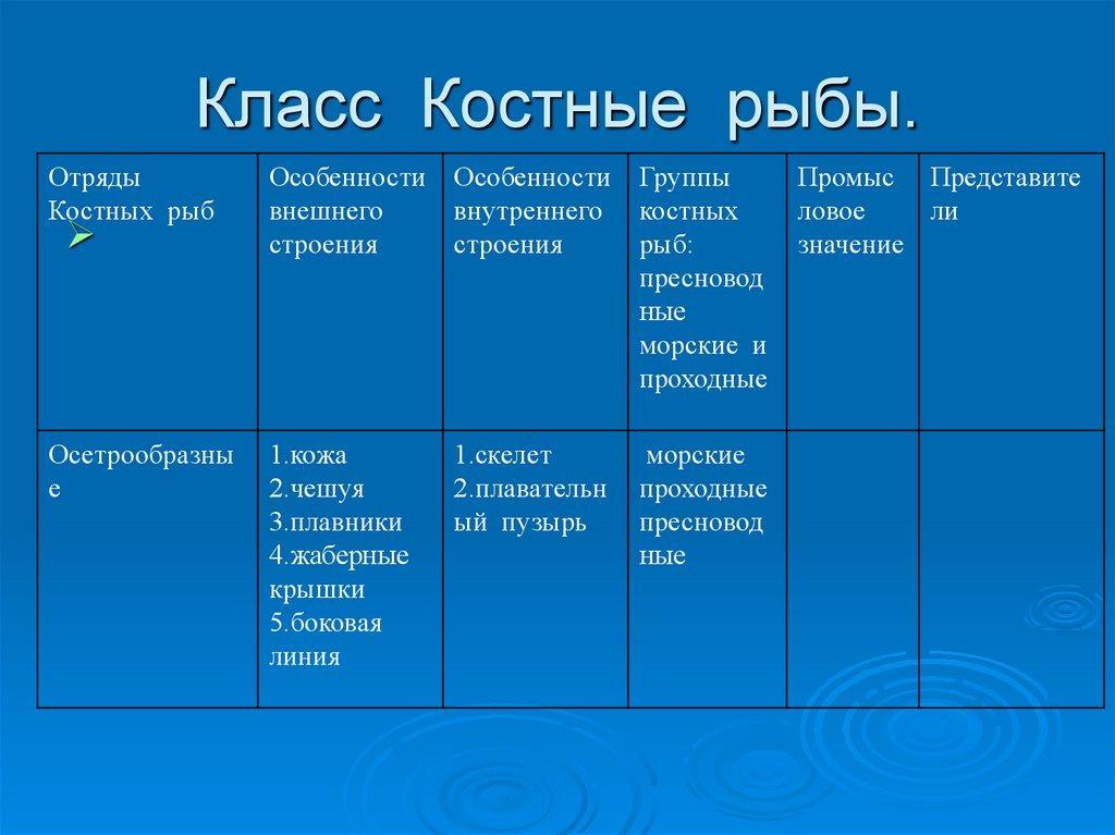 Костных рыб подразделяют на костно-хрящевых, двоякодышащих, кистепёрых и костистых.
