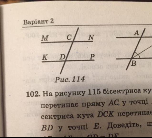 :На рисунке 114 прямые MN и KP параллельные.Доведите,что биссектрисы углов MCD и CDP параллельные.
