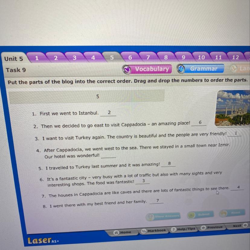 Номера со скобочкой «)», те которые сиаяться в пропущенные поля. А те которые стоят после скобочки-номера предложений.