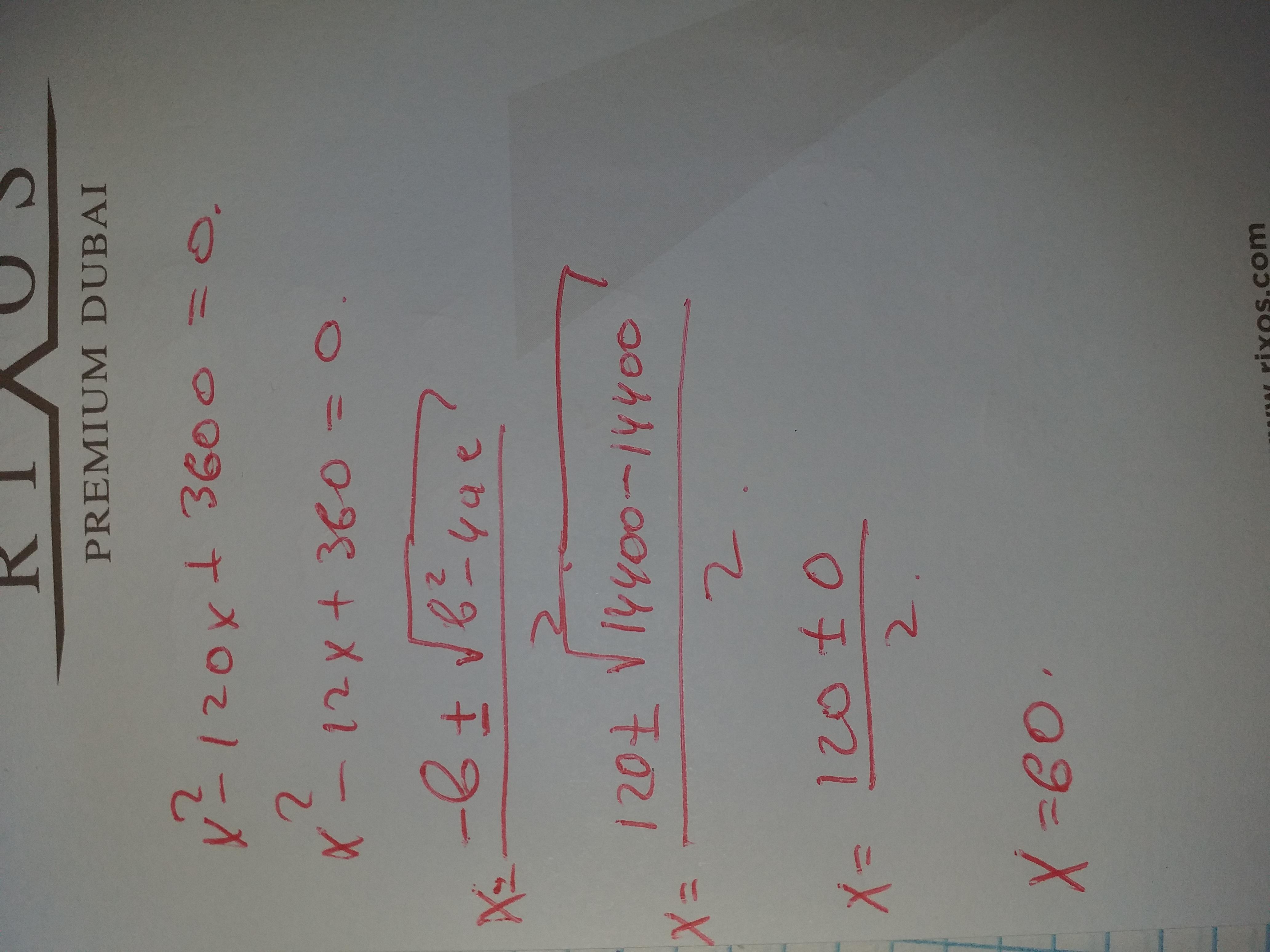 D=(-120)в кв-4•1•3600=14400-14400=0