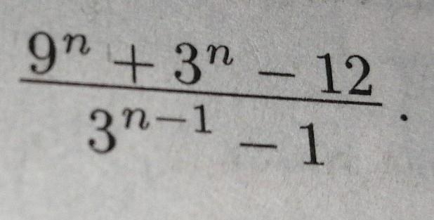3^{n} =t\t^{2} +t-12=0\t1=-4; t2=3\frac{(3^{n}-3)( 3^{n}+4)}{3^{n-1}-1} =frac{3(3^{n}-3)( 3^{n}+4)}{3(3^{n-1}-1)}  =frac{3(3^{n}-3)( 3^{n}+4)}{3^{n}-3} =3( 3^{n}+4)= 3^{n+1}+12