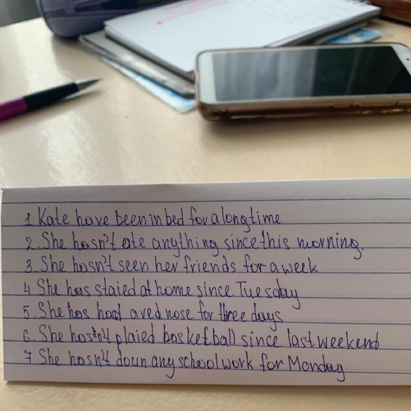 Kate has been in bed for a long time
