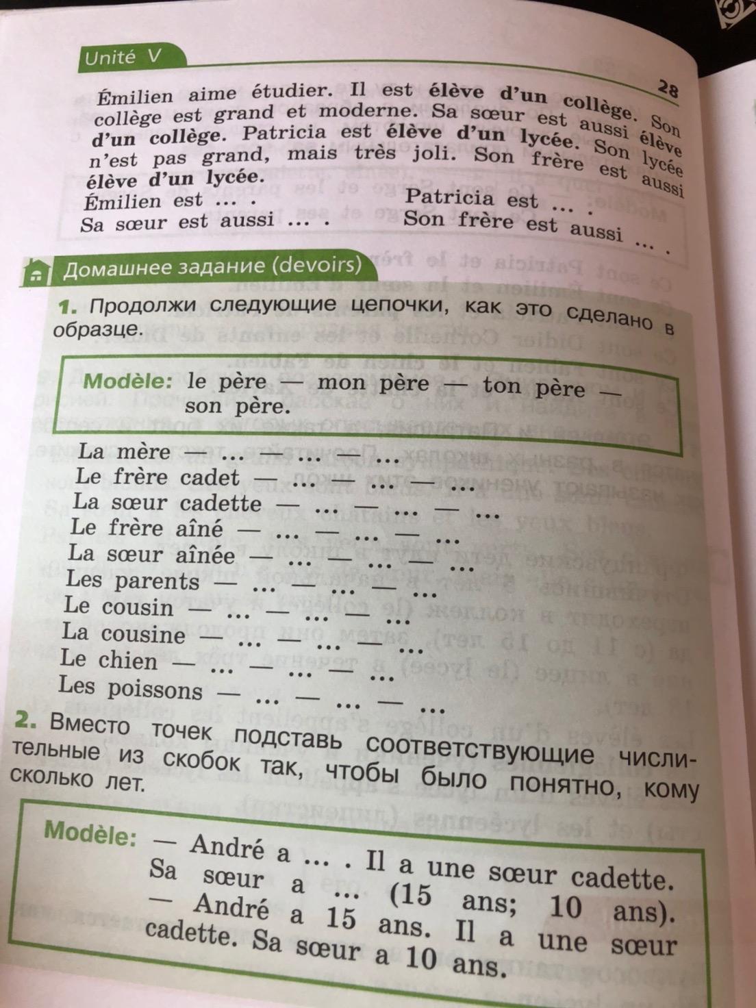 СРОЧНО ФРАНЦУЗСКИЙ!!!!!!!! Продолжи следующие цепочки, как это сделано в образце